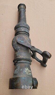 This antique brass "Akro" firefighting hose nozzle with a yolk handle is a true gem for collectors and enthusiasts of firefighting and rescue equipment. The nozzle is beautifully patinated and has a unique design that makes it stand out from the rest. It is a perfect addition to any collection of historical memorabilia and collectibles related to firefighting and rescue. The nozzle is signed and made in the United States, adding to its authenticity and value.